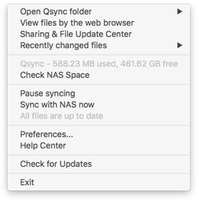 Click on the Qsync icon on the taskbar to see the management functions:- Add files and view the synchronization result on the NAS