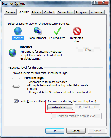 Some people are having trouble to install ActiveX on IE when running a Windows 7 computers. If you are probably getting an error related to the “DVM_IPCAM2 ActiveX Control Module” which states “Windows has blocked this software because it can’t verify the publisher.”, please change your Internet Options to fix it.