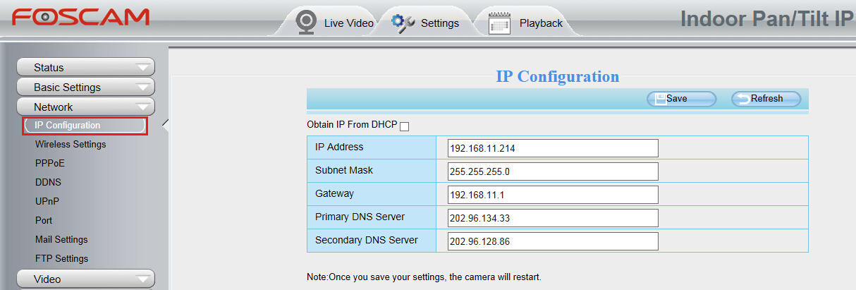 Set a static IP address for camera.
