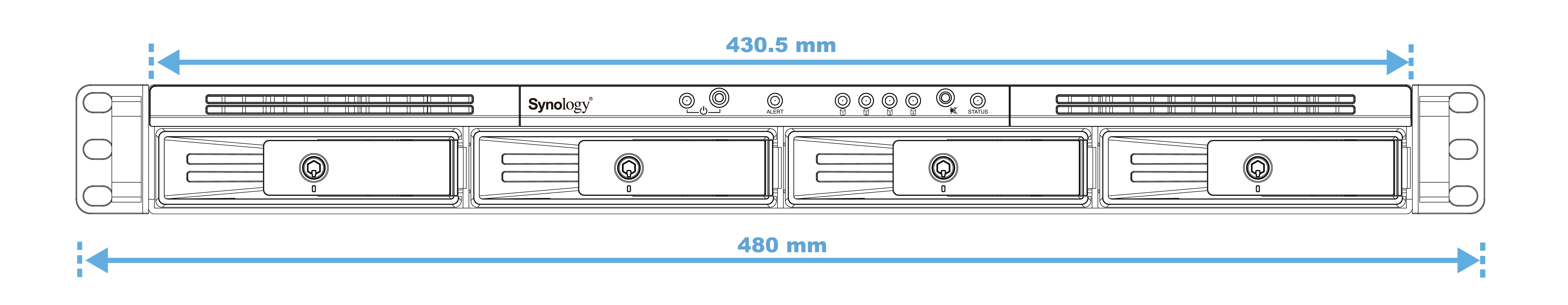 All Synology RackStation servers are designed to fit in a standard 19-inch server rack cabinet. Please refer to the illustrations and model groups below for the width of your Synolgoy RackStation and arrange cabinet space accordingly.
