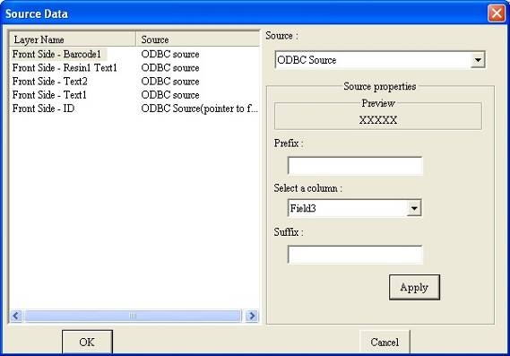 (8) Select Source- ODBC Source(printer to file name). Select column- Field5.