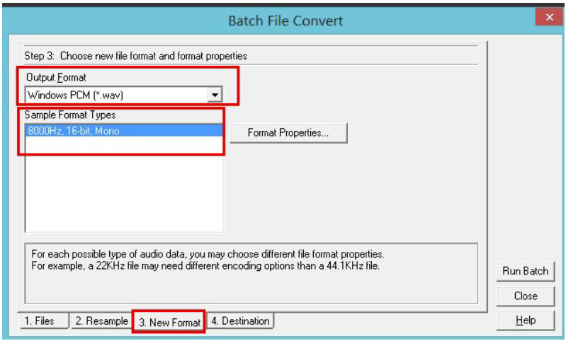 Please follow the below settings to change the format to lullaby recognized format: