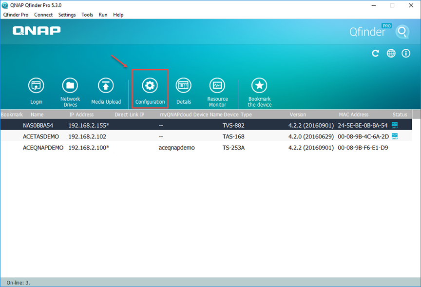 Step 1: Click for the configuration icon at the QNAP Qfinder Pro application