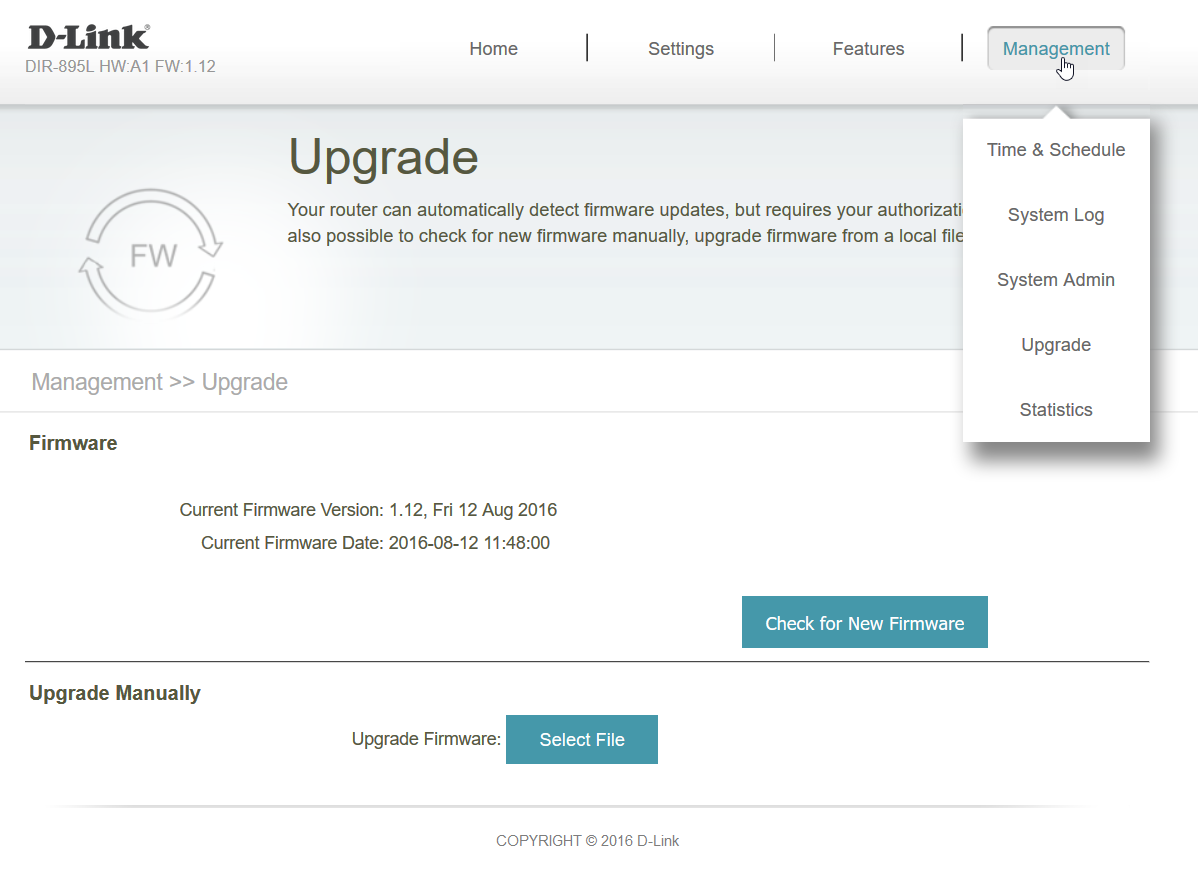 a) Upgrade the Firmware by going to top menu > Management > Upgrade, then Select File and look for the unzip firmware.Upload and upgrade. (Reboot will occurs automatically)