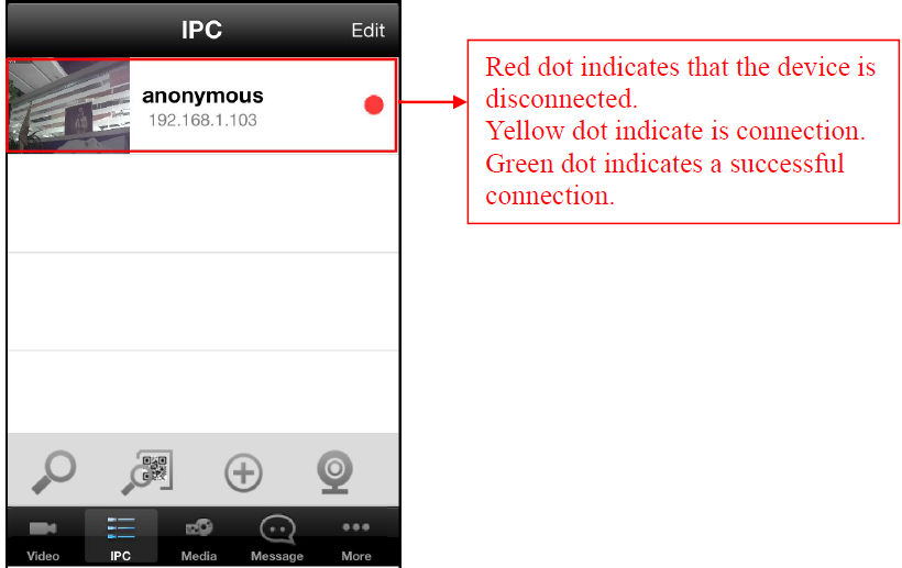 Click IPC back to the IPC list page, tap the camera you want to connect.